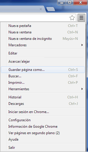 Sin asustarnos demasiado (sólo lo justo), hacemos clic con el botón derecho del ratón sobre este texto tan apetecible y seleccionamos la opción: Archivo / Guardar como...