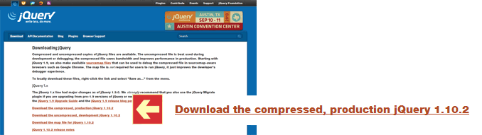 Detalle del apartado de Descarga de jQuery
